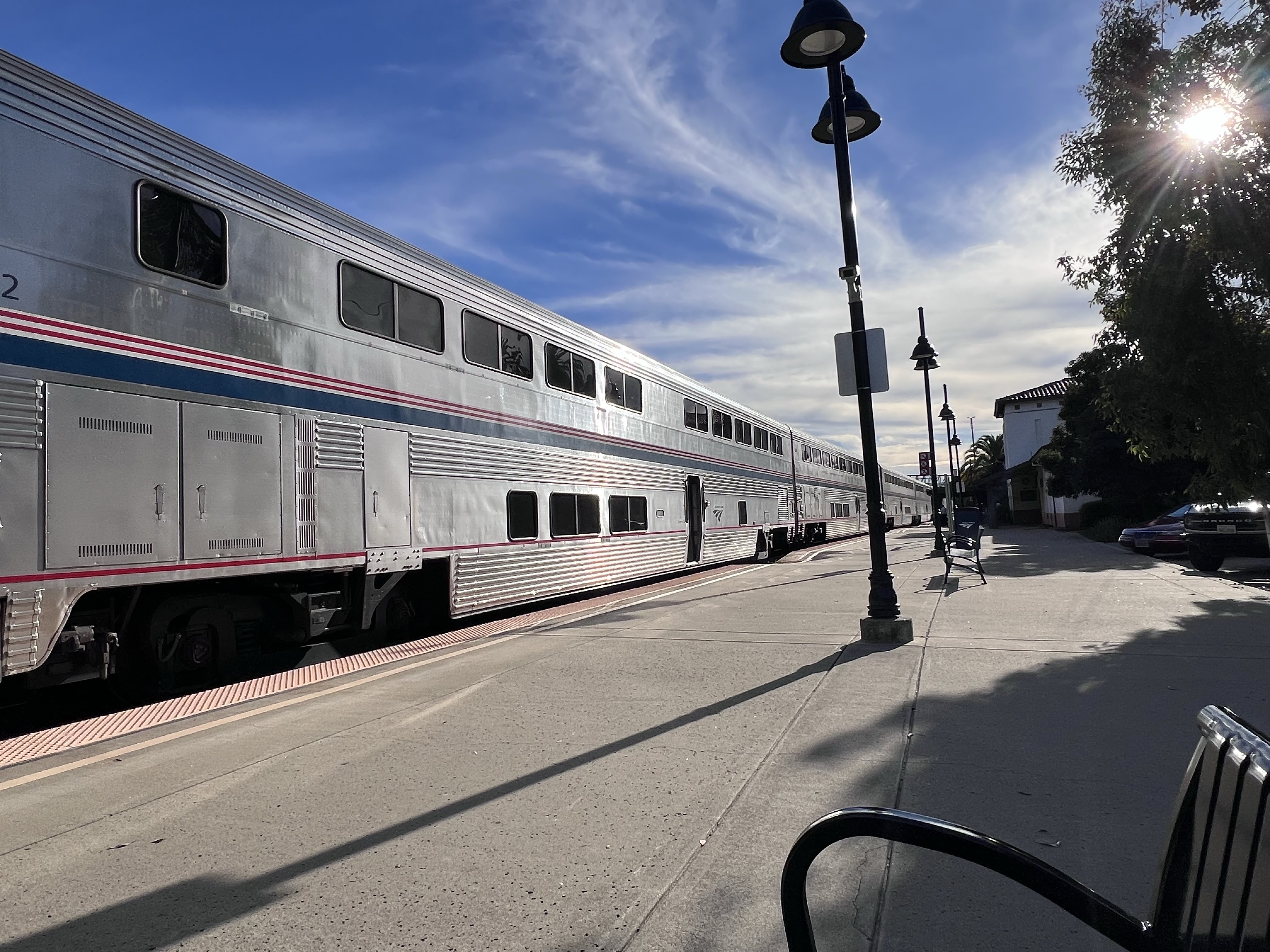 In those 1,377 miles the only place that both the northbound and southbound (Trains 14 and 11) meet at a station is San Luis Obispo.