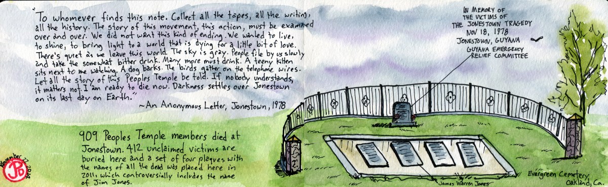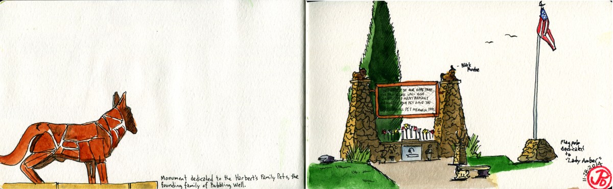A first time visitor might think that this blog should be re-titled, “Cemetery Scribblings” after seeing this post. A second sketch of a cemetery and a connection to the turbulent year, 1978. What brought me to this cemetery in Napa, was a 1978 film which the late film critic Roger Ebert hailed as a “masterpiece” and placed it on his list of the top ten films of all time. The film is Errol Morris’ first feature “Gates of Heaven”. This documentary follows the plight of two Californian pet cemeteries, one fails and is forced to close and the other survived (taking the 450 pets buried in from the first cemetery) and is still open to this day, run by the same family.