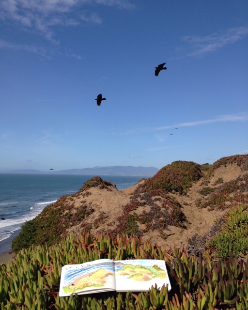 The geriatric emu hobbling along with Bubbling Well Pet Memorial Park and Napa Valley in the background.