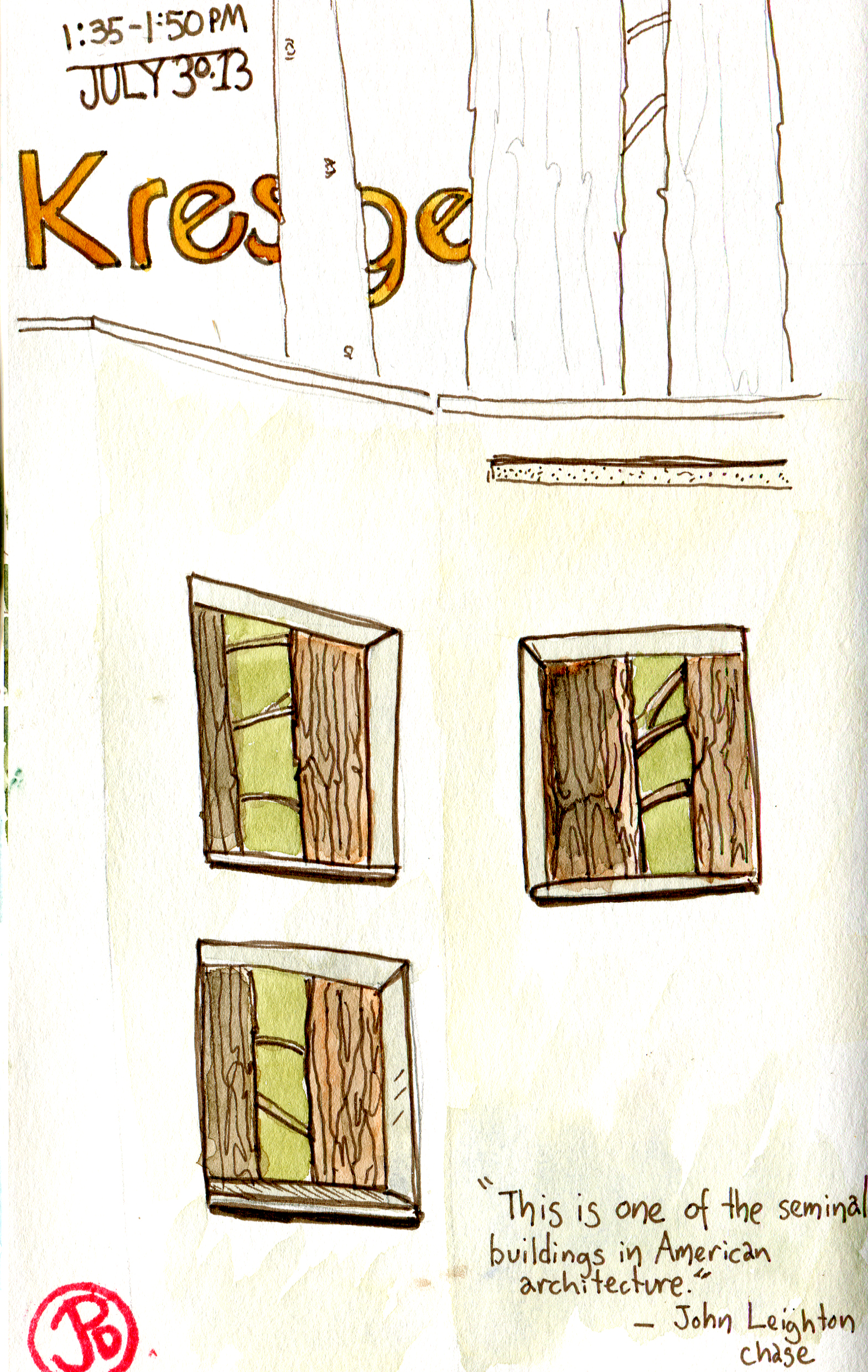 The beautiful campus has provided many sketching opportunities and the sketch above was completed on one recent Sunday, June morning, while seated on stage, looking out to the Sinsheimer-Stanley Festival Glen. My only audience was a feeding doe and her spotted fawn.
