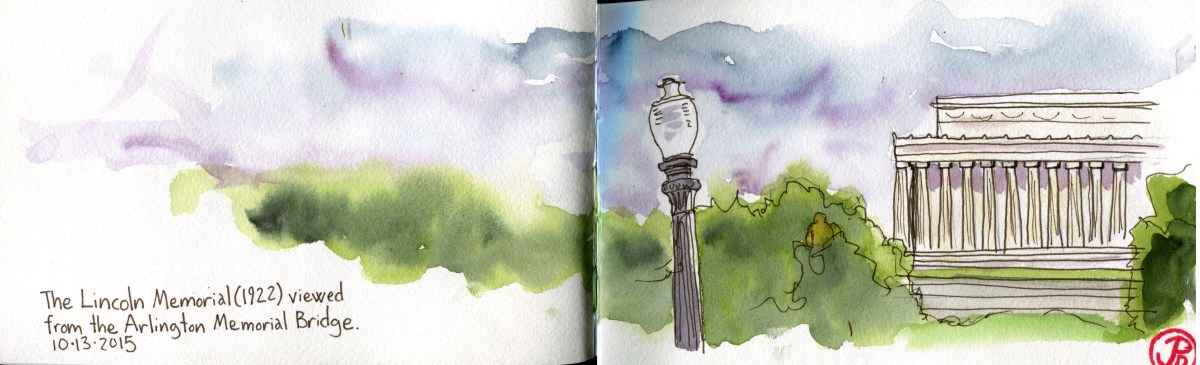 I sketched the church from a circular planter in “The Quad”, just off center to the left. Waves of Sundayers wandered into view with their selfie-sticks and phones, framing their heads and the backlit north facade of the church. Most of the time I am so focused on the sketching that I tune out the hordes that fill in the foreground. They rarely make their way into my sketches, but it was hard to avoid the family that surrounded me.