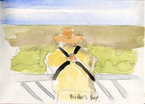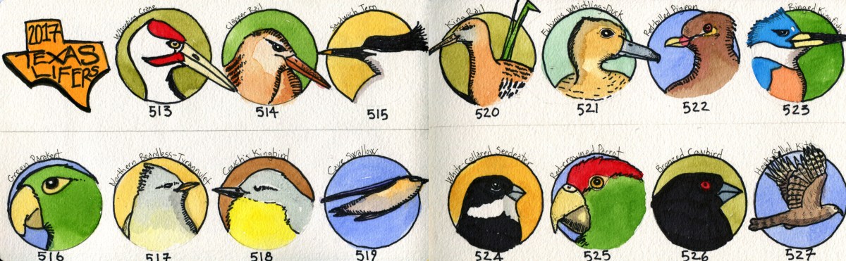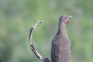 In a tree above a campsite we heard a very finch-like song. We tried to locate the singer but with no luck. Two finches flew off towards the creek and we did not get very good looks. Not good enough to call them LAGOs. The finches soon returned and this time the male perched on top of the tree in full view. He sang giving us great looks. We noted his black cap and face, gray back, and his yellow ‘bra”. Lifer for Dickcissel and Creeper!