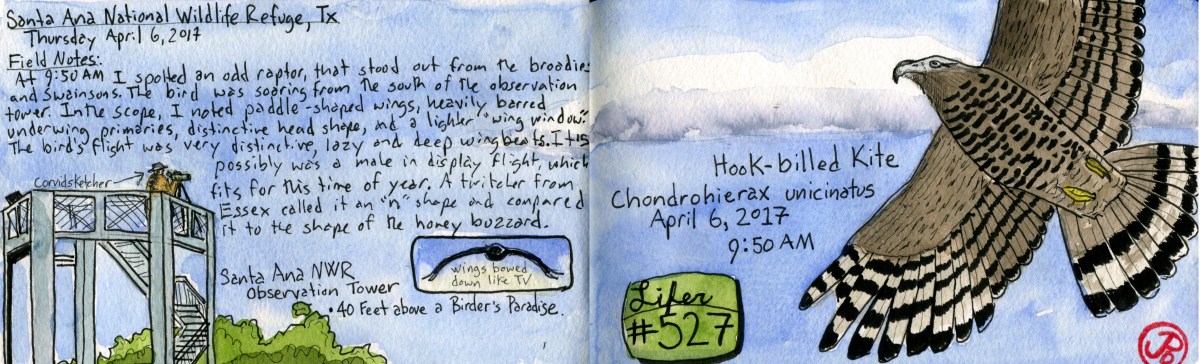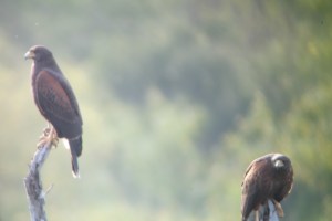 Between mile 11 and 12, I pulled over. Something seemed about right on this stretch of road. I scanned the skies and a very stable looking raptor caught my attention as it circled to our north. This bird was uniformly dark with “plank-like” wings with large primaries. We all knew what it was but we didn’t utter it’s name. Incredibly the bird flew south giving us an amazing rapturous flyby. “There’s your golden!”