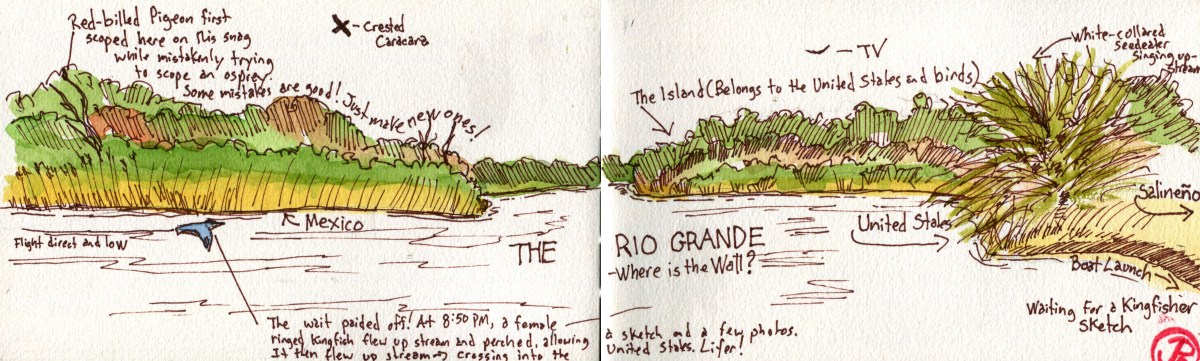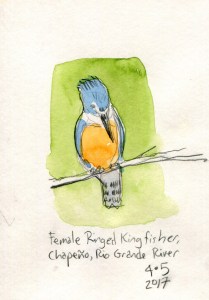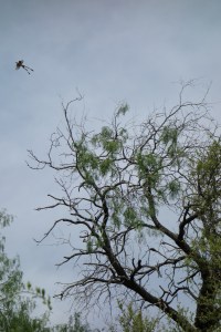Mines started to climb up into the green oak-studded hills giving us wonderful views in all directions and a wide panorama of the blue cobalt skies. Any large bird soaring caught our attention. At this point we had seen red-tails and turkey vultures, a few accipiters and a female American kestrel.