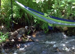 This creek runs parallel to my mother’s house in California’s Gold Country, along side the stone wall that was built by Chinese immigrants in the 1850s. And there is no better way to find the angle of repose than some extreme hammocking.