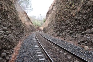 After my visit to the California State Railway Museum I headed to a lasting vestige of the Transcontinental Railway, an engineering feat called, “the eighth wonder of the world”. It was about 30 minutes north of Sacramento between Newcastle and Auburn. This was the 63 foot deep and 800 feet long man-made canyon known as Bloomer Cut.