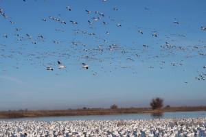 Thousands and thousands of wintering waterfowl. In this case snow geese at Sacramento National Wildlife Refuge. When you have high numbers of ducks, geese, coots, and swans you also have raptors and it is always a treat to see our National Bird: an adult bald eagle.