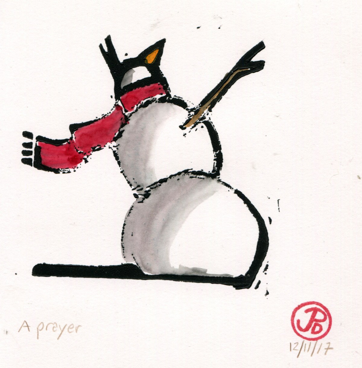 I leave it up to the viewer as to what the snowman is praying for or even if he can pray at all.