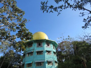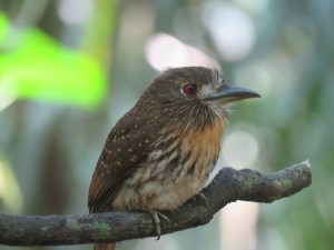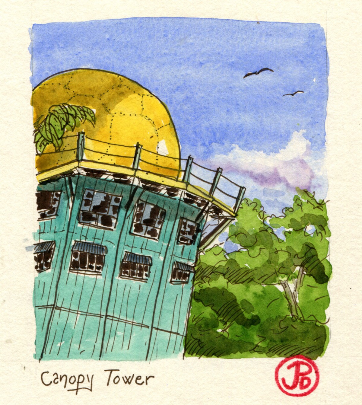 Our first destination was the observation tower. At 40 meters tall, the tower put us above the rainforest canopy. No stiff necks here, trying to locate an elusive warbler or cotinga. Now we were looking down on them!