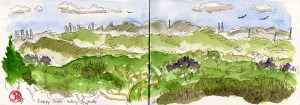 There was plenty signs of migration in the blue sky and among the treetops. Swifts and swallows passed by and an eastern kingbird perched up on a bare branch, perhaps a brief pause on its journey north. A long line of brown pelicans crossing over the verdant hills.
