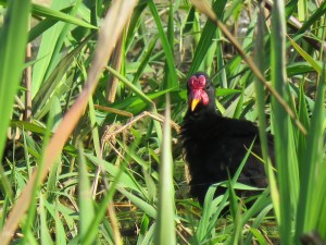 After sometime in the observation tower, we headed out to the Lake Trail that ended at a deck on Lake Calamito. There was a striated heron hunting in front of us and a rufescent tiger-heron devouring a water snake. Near the far shore, a large crocodile was moving on the waters. On the tree above was perched a male snail kite.