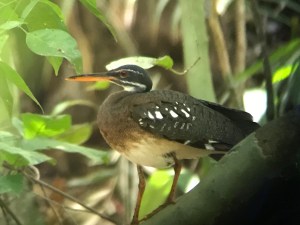 You know when Alex, who birds this area frequently , gets excited about seeing a bird, then you know that bird is really special. The small accipiter flew into the top of a tree pursued by hummingbirds was the source of Alex’s excitement. This was one of the smallest hawks in the world: a juvenile rufous morph tiny hawk.