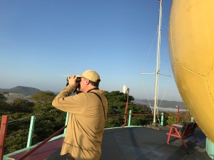 The sketcher in his happy place, dawn on the observation deck of the Canopy Tower, Panama.