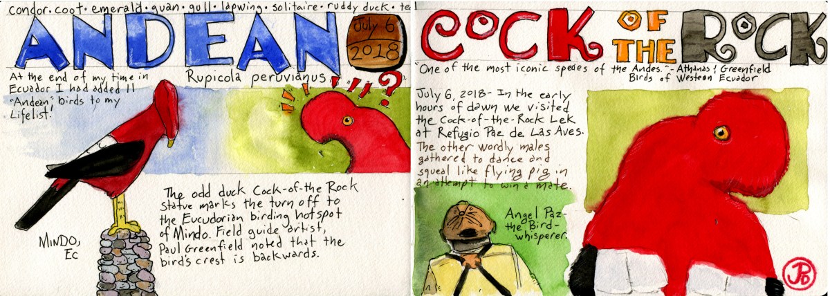 The Americas have cornered the market of these colorful, big-billed birds and on this trip to Northwest Ecuador, I have three species on my wishlist: crimson-rumped toucanet, Choco toucan, and plate-billed mountain-toucan. Out of all 1,600 birds that occur in Ecuador only one graces the cover of the seminal field guide, Birds of Ecuador. This was the bird that looks like it should be advertising sugar coated cereal to the youth of North America; this is the plate-billed mountain-toucan.