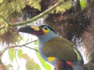 A few days later, while heading up the dirt road to Bellavista, we heard the distant call of the plate-billed mountain-toucan. This was not a very satisfying view of this colorful toucan and we hoped to have better views as we headed up the road but we didn’t.