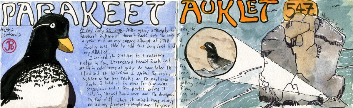 At the end of the summer of 2017, the auklet remained off my list and I was resigning to going to Alaska in June during my retirement years to add this nemesis bird to my ABA list.