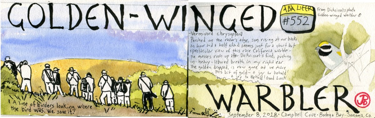The first rarity was unexpected, but which rarity really is? I was heading back from teaching a sketching workshop in historic Coloma, California to the naturalists at CODS (Coloma Outdoor Discovery School). On my return I received a text from Dickcissel that an Eastern yellow wagtail had been seen the previous day at Rodeo Lagoon in the Marin Headlands.