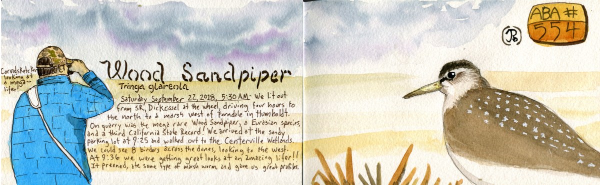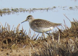 The next mega rarity was first seen on Friday September 14 in Humboldt County at the Centerville Wetlands just west of the town of Ferndale. It was identified as a rare (to California and only a third State record) Eurasian shorebird: a wood sandpiper. It was not refound on Saturday but Sunday morning it was seen again and seen by many birders.
