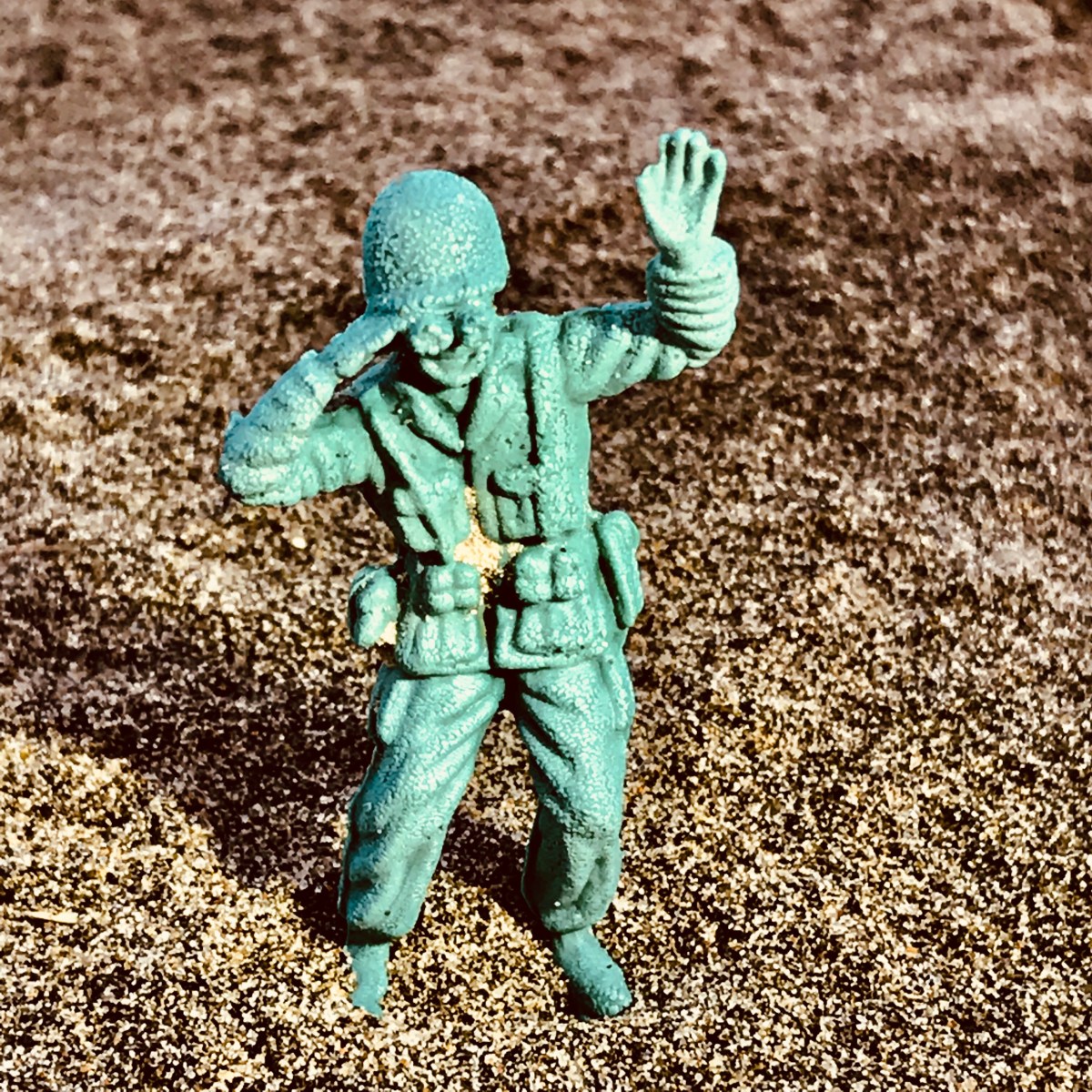 It was a plastic, olive green army action figure, the kind that I used to play with when I was a child. Each figure was in a different pose. There was the soldier crawling on the ground, the solder kneeling on his knee, rifle raised to his eye, the dude with the flame thrower, the guy shouldering a massive bazooka, and the soldier on the phone. But the little green soldier that I held in my hand was none of those, but the solider with left arm raised and in his right hand he held binoculars raised to his eyes, as if shouting out, “I think I see it. . .yes it’s a LeConte’s thrasher!”