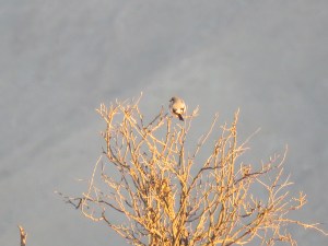 Off to the northwest I clearly heard another thrasher’s song and as I hurried across the flats (dodging bushes along the way) I could see a distant bird perched up on a snag. Could this be my first good look at a LeConte’s?
