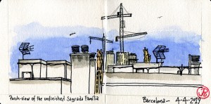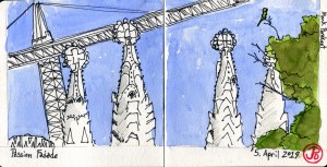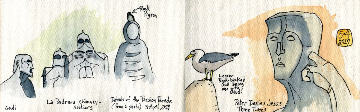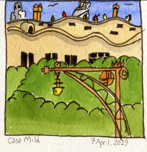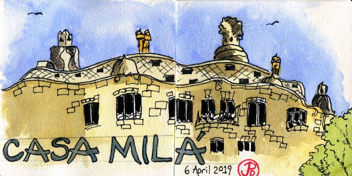 Casa Milà was certainly tops my list of Barcelona architecture to see and sketch. It is also one of the most visited attractions in the city, Gaudí ‘s La Sagrada Família is the number one most visited site in Catalunya. And considering the annal numbers of tourists that visit Barcelona is over 30 million! Because of this I prebooked my ticket for 9:30.