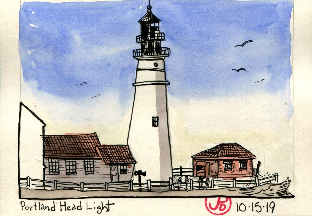 A little watercolor near the water. The rocks just north of the lighthouse provided the perfect sketcher’s seat. I had a raft of common eiders to keep me company.