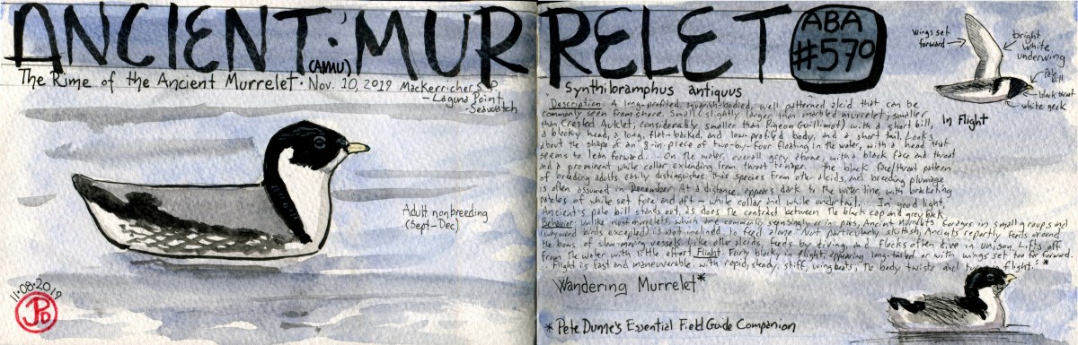 Scoping the Pacific. There was lots of southerly movement at Laguna Point. Mostly loons and surf scoters and the alcid I wanted to see: the ancient murrelet. Does this hat make me look ancient?