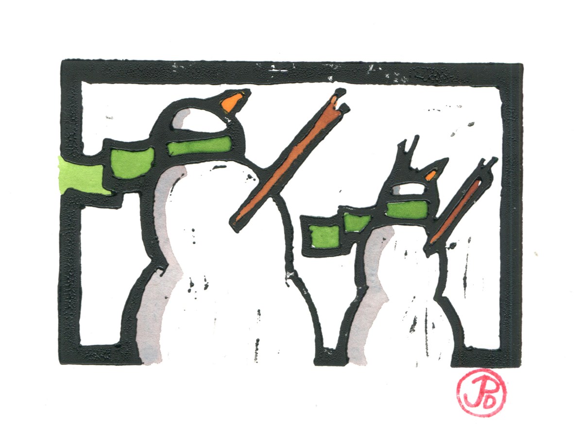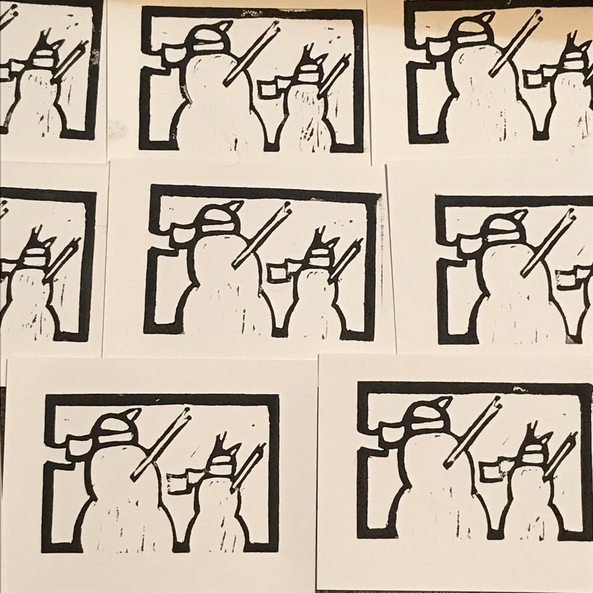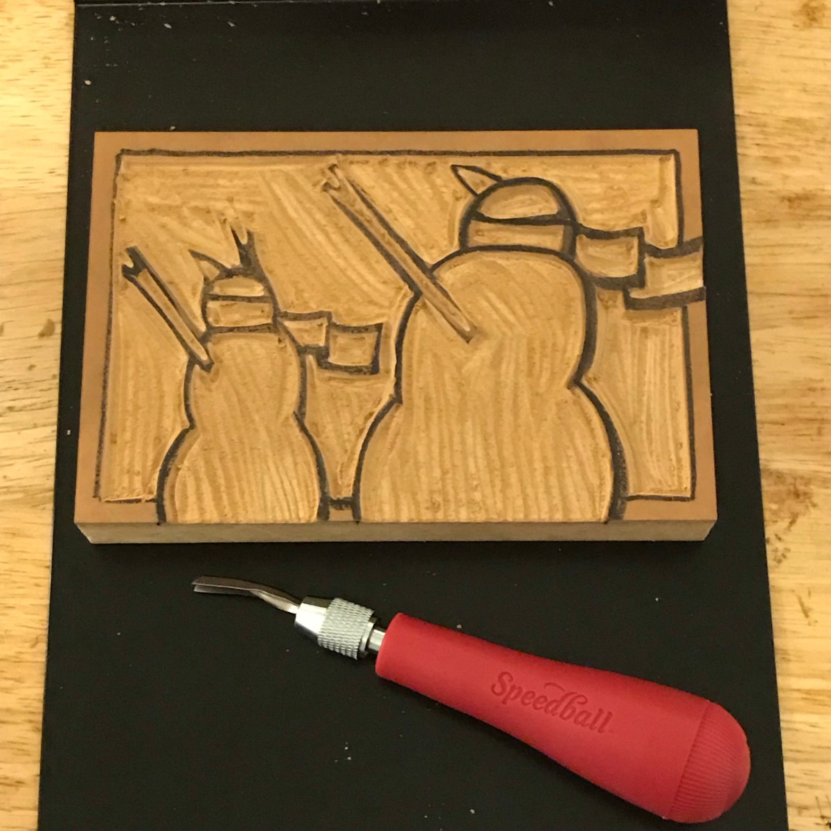 A refined draft sketch which I used to draw the design on the linoleum block, in reverse of course. Here I am just started to carve out the block.