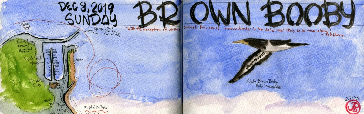 The Bay Area rarity was finally ours. Male harlequin duck just beyond the breakwater at Coyote Point Marina.