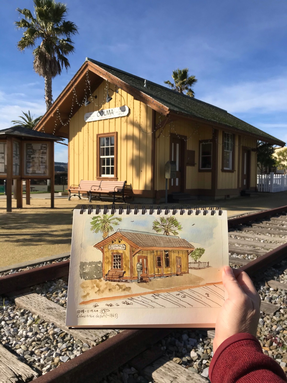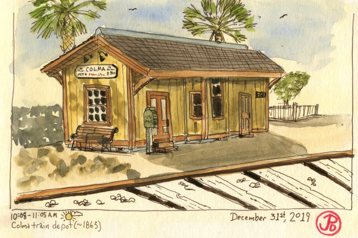 My next plan was to ride Caltrain from San Francisco down to all the historic stations in San Mateo County and sketch each one.