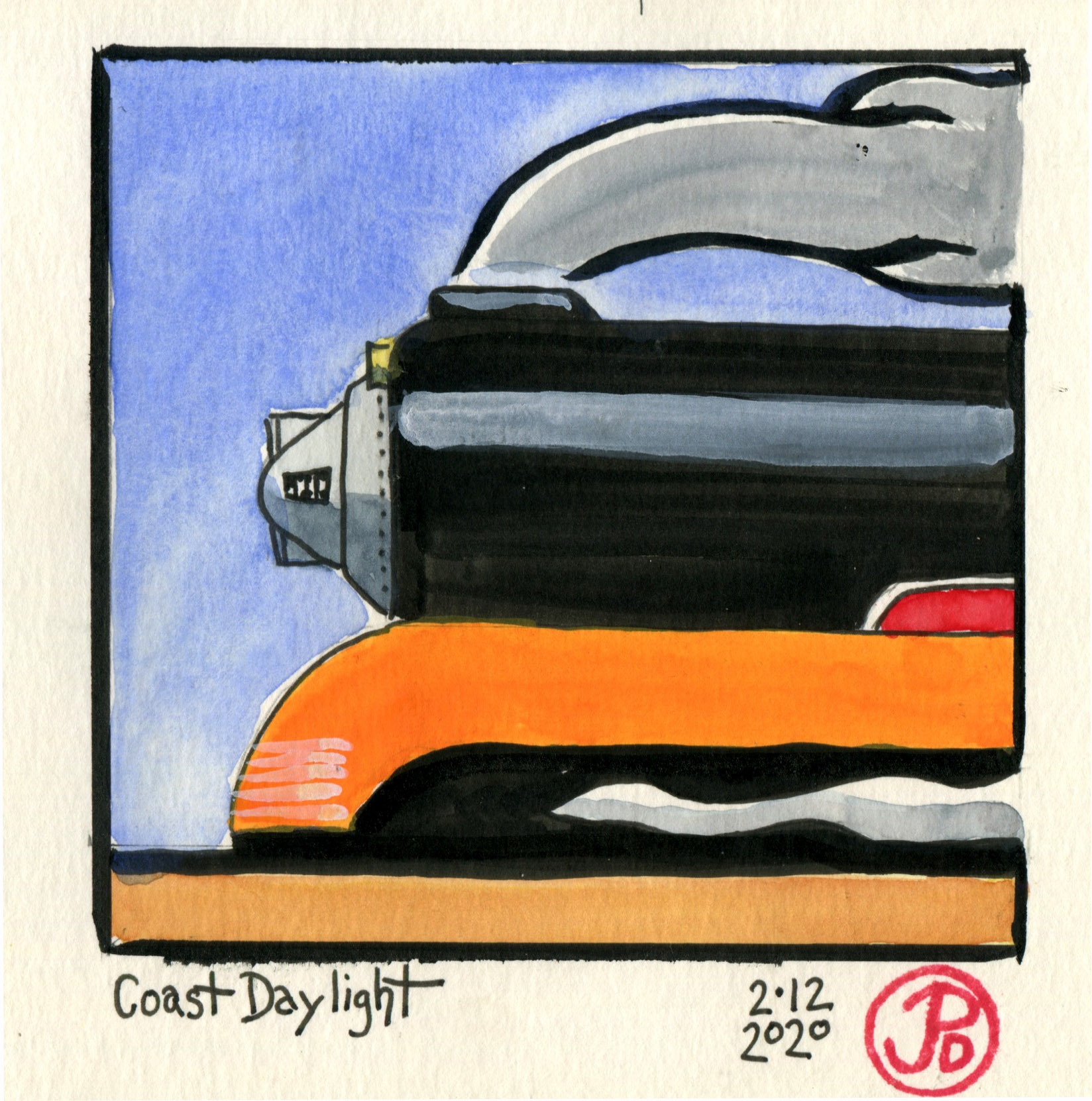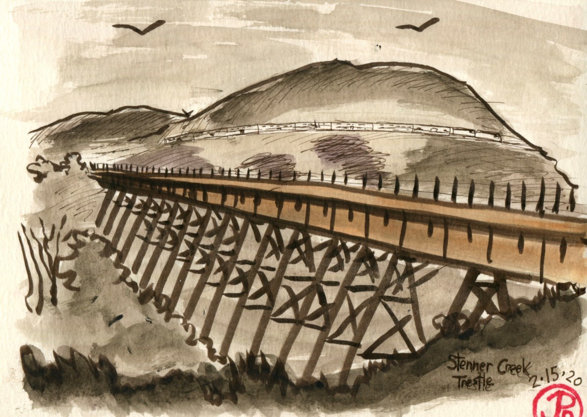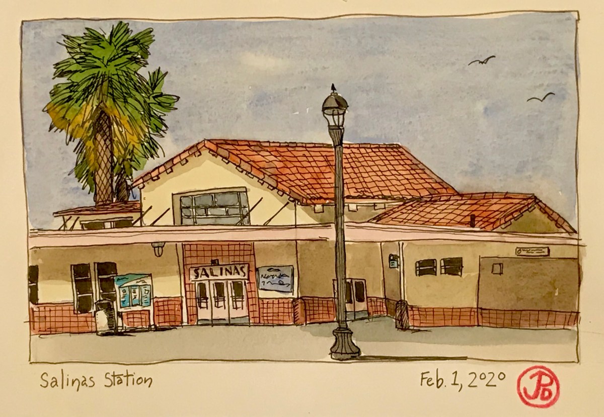 Part of the joy of train travel is the people you meet on your journey, albeit a very short journey, I met a travel writer and fellow birder in the observation car. We birded the beautiful coastal afternoon (harriers, red-tails, and turkey vultures) and talked about our travels and writing and sketching. You certainly would never have this experience driving the coastal route in a car.