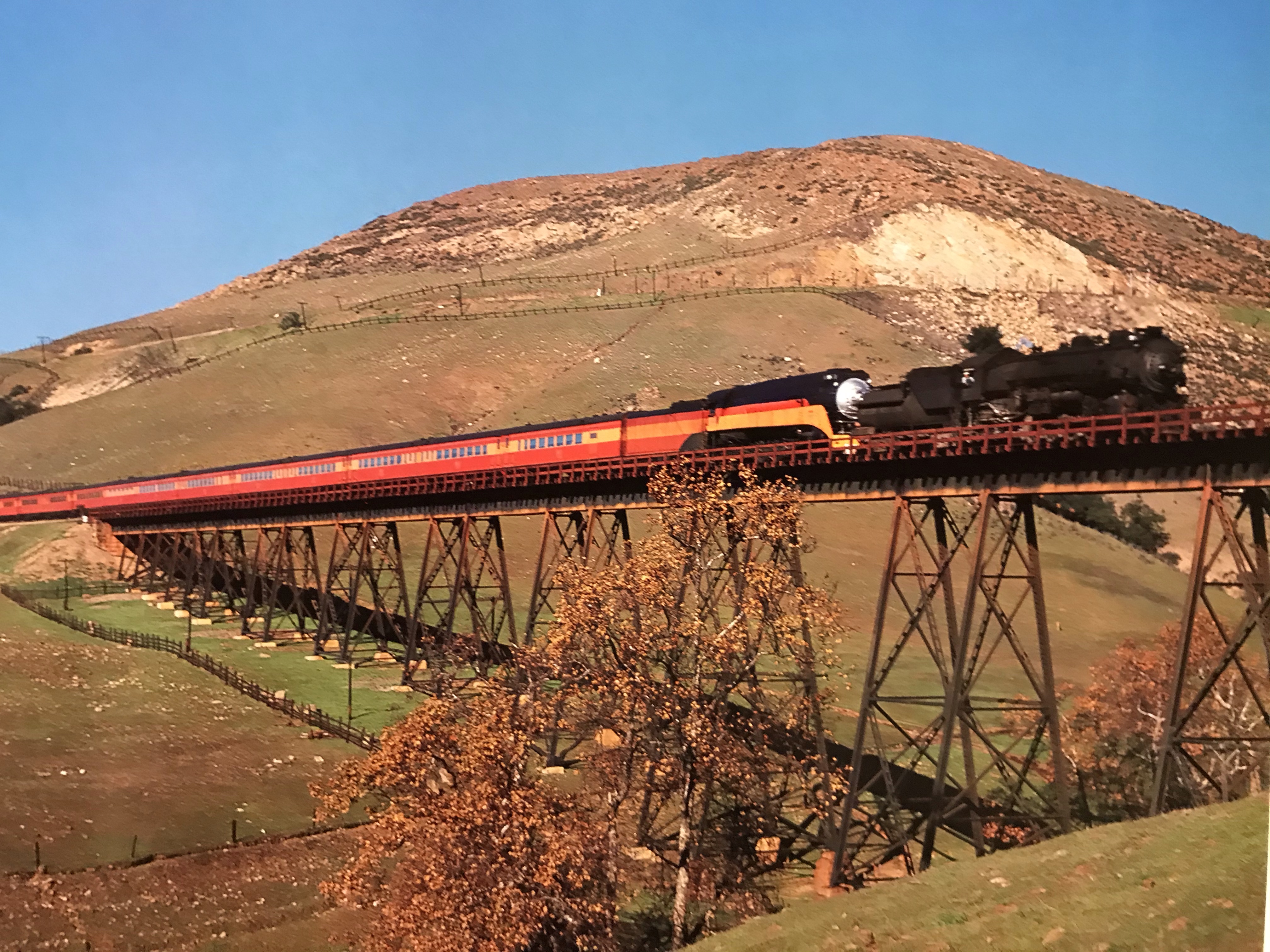 The Coast Starlight really earns its name, just as the Coast Daylight did, between the stops of Santa Barbara and San Luis Obispo. The route runs on the coastal line between Los Angeles and San Jose giving passengers outstanding view of the Pacific Ocean. It’s only fitting that the cover of the ninth edition of USA by Rail by John Pitt features an aerial photograph of Coast Starlight, Number 14, snaking along the coast between Santa Barbara and SLO.