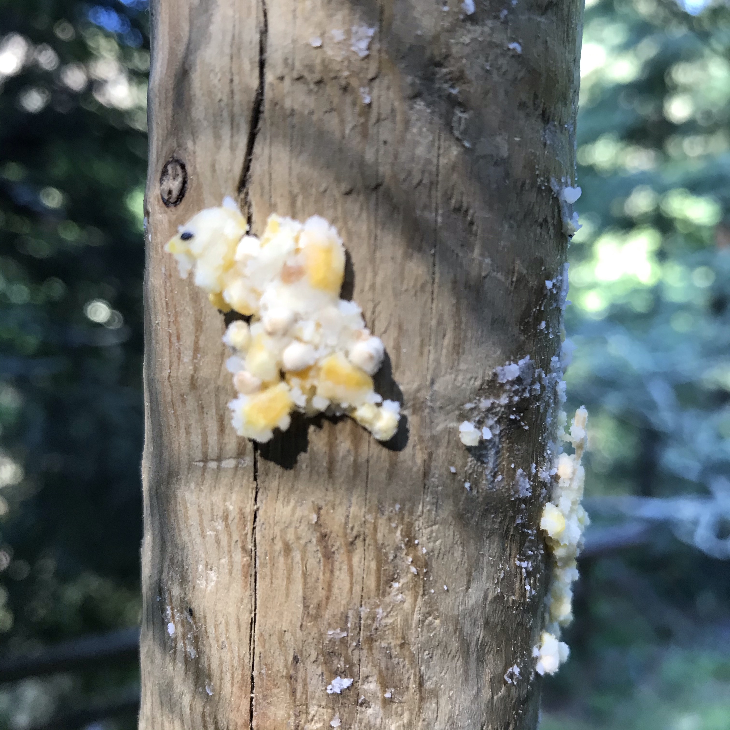 I first drilled a hole through the top of the pole in order to put some rope to hang the feeder. I then drilled five holes, about one inch in depth, at 90 degrees from each other, along the length of the pole.