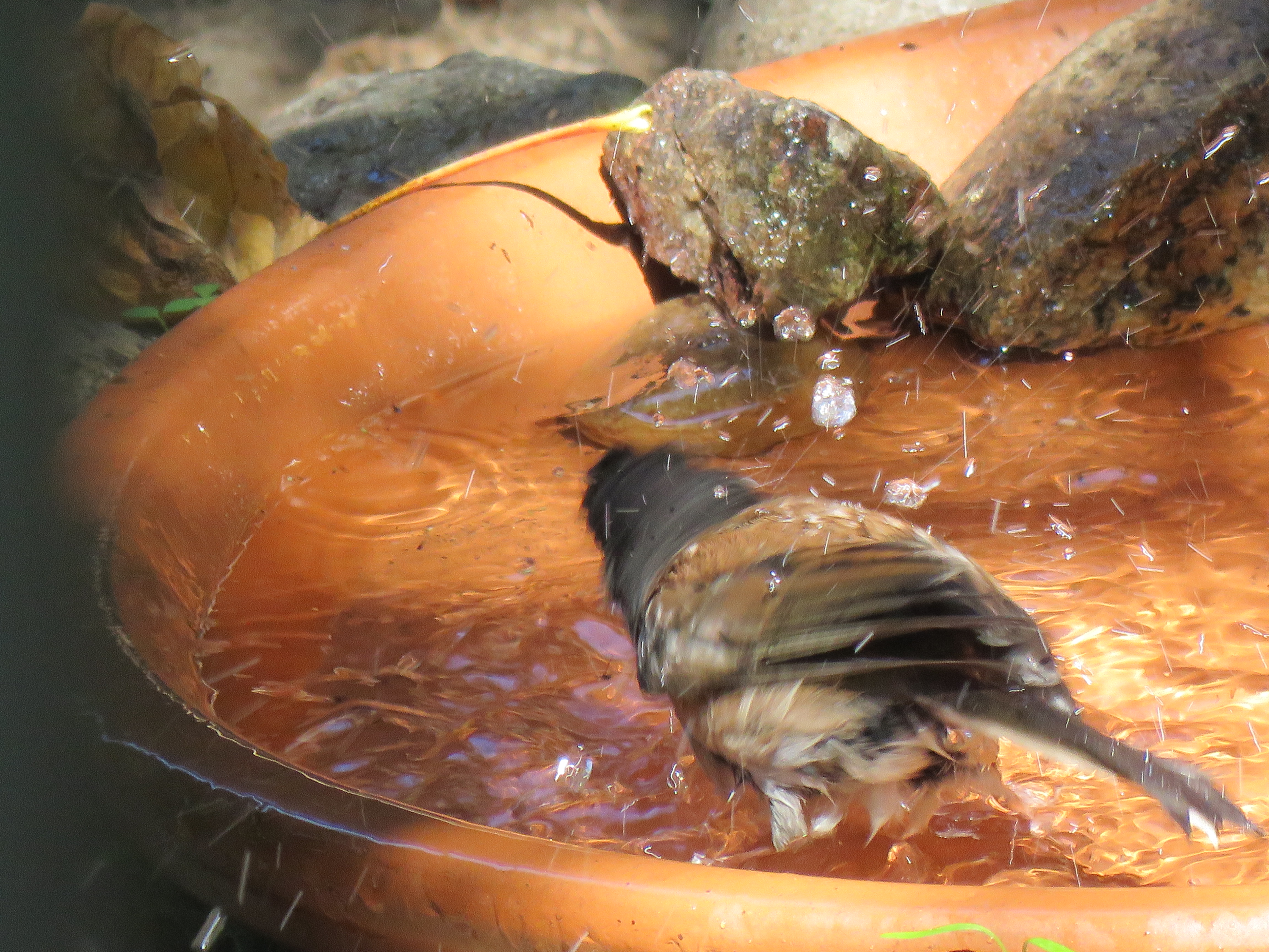 A song sparrow was the first bird I saw using the birdbath. Not to bathe but to drink.