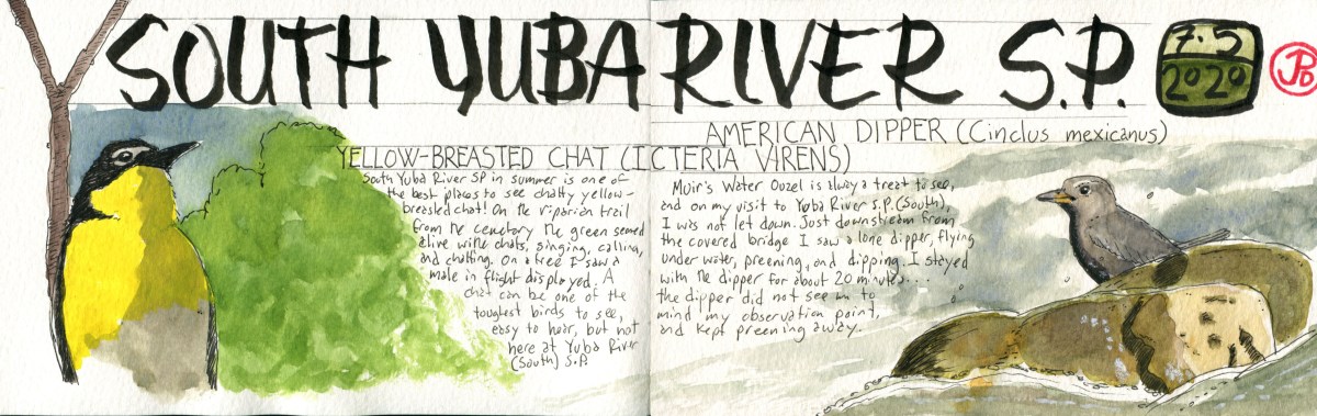 The real highlight a visit to the Yuba, especially where waters are at their most turbulent, is the appearance of John Muir’s favorite bird. A small, short-tailed, and dark gray bird, the American dipper.