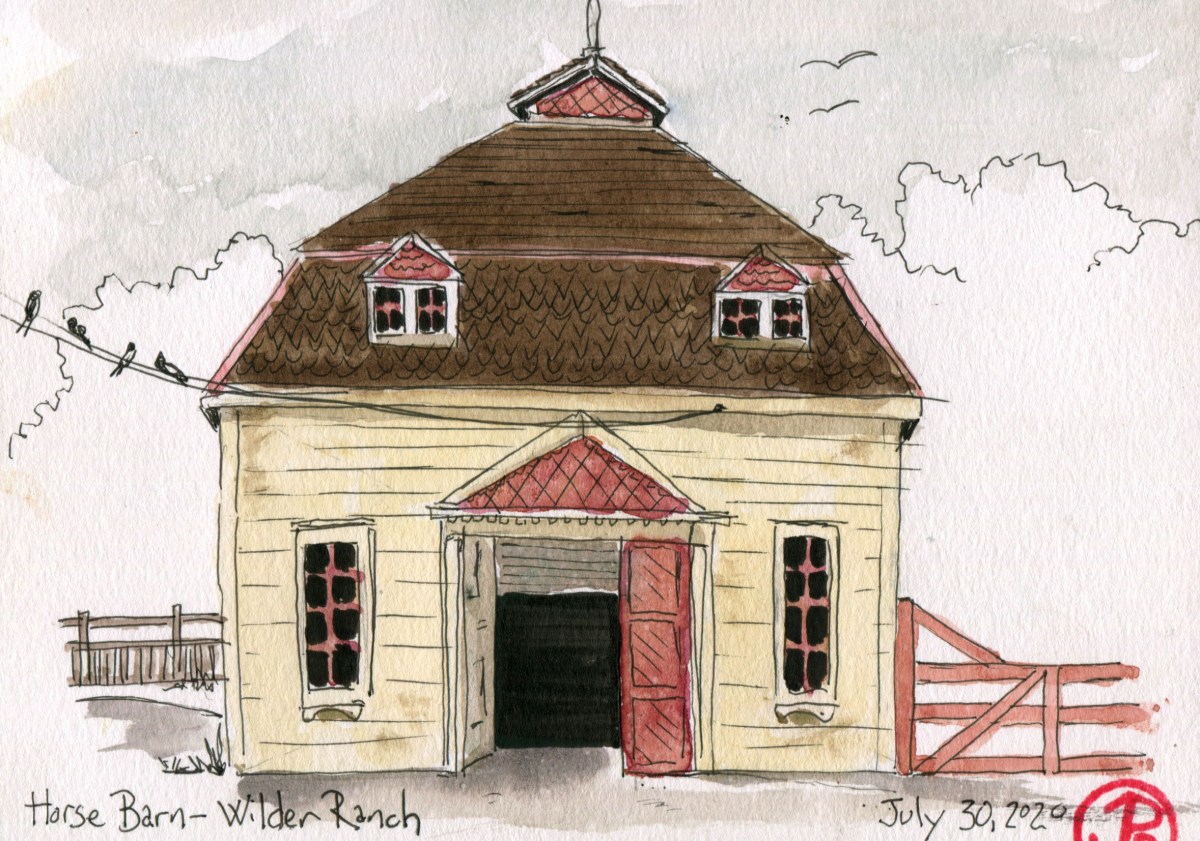 I parked on Highway One and headed down to the historic ranch buildings of Wilder Ranch. While most people hike or mountain bike on the 35 miles of trails of Wilder, I set up my camp chair in front of the Horse Barn.