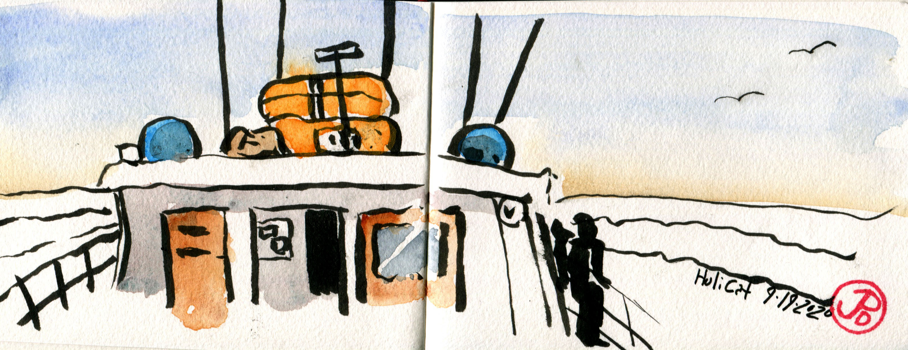 A few pelagic birders were milling about. You could always tell them apart, they had on birding hats, often displaying some national or international birding destination. They usually had optics around their neck and were nibbling on ginger snaps or cookies and thumbing through bird guides. Some where even checking out the local western gulls and pelicans.