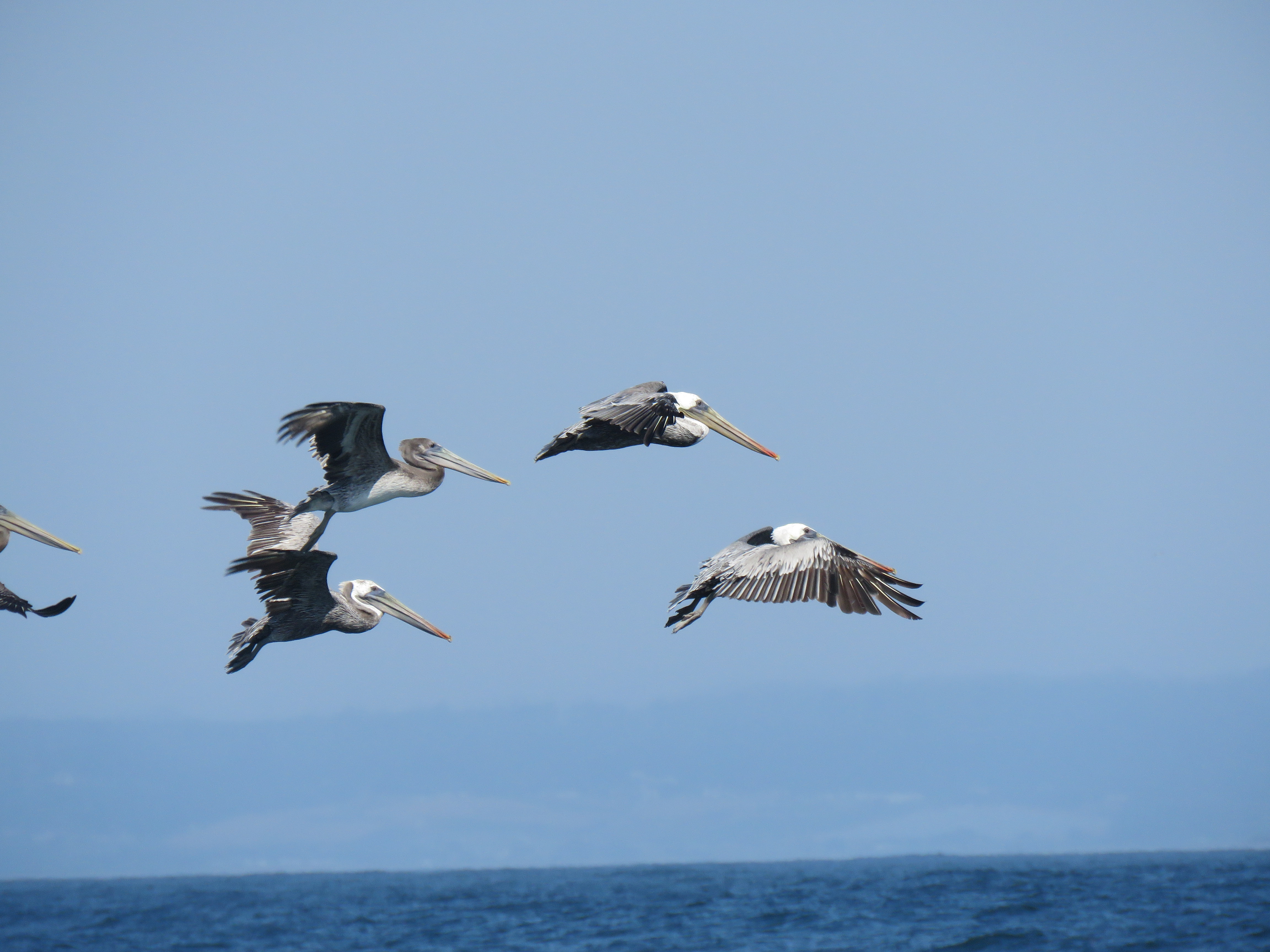 We soon made a course to the west as we headed back to port. Here we saw more inshore species like common murre, Brandt’s cormorant, and brown pelican. The latter species it’s truly one the of the iconic inshore west-coast species. Brought close to extinction by the pesticide DDT, they now flourish in the Pacific. A line of pelicans approached from our port side. Such a common species here, now, but is there no other bird in flight, over the seas that is more soothing to soul and meditative, than a line brown pelicans?