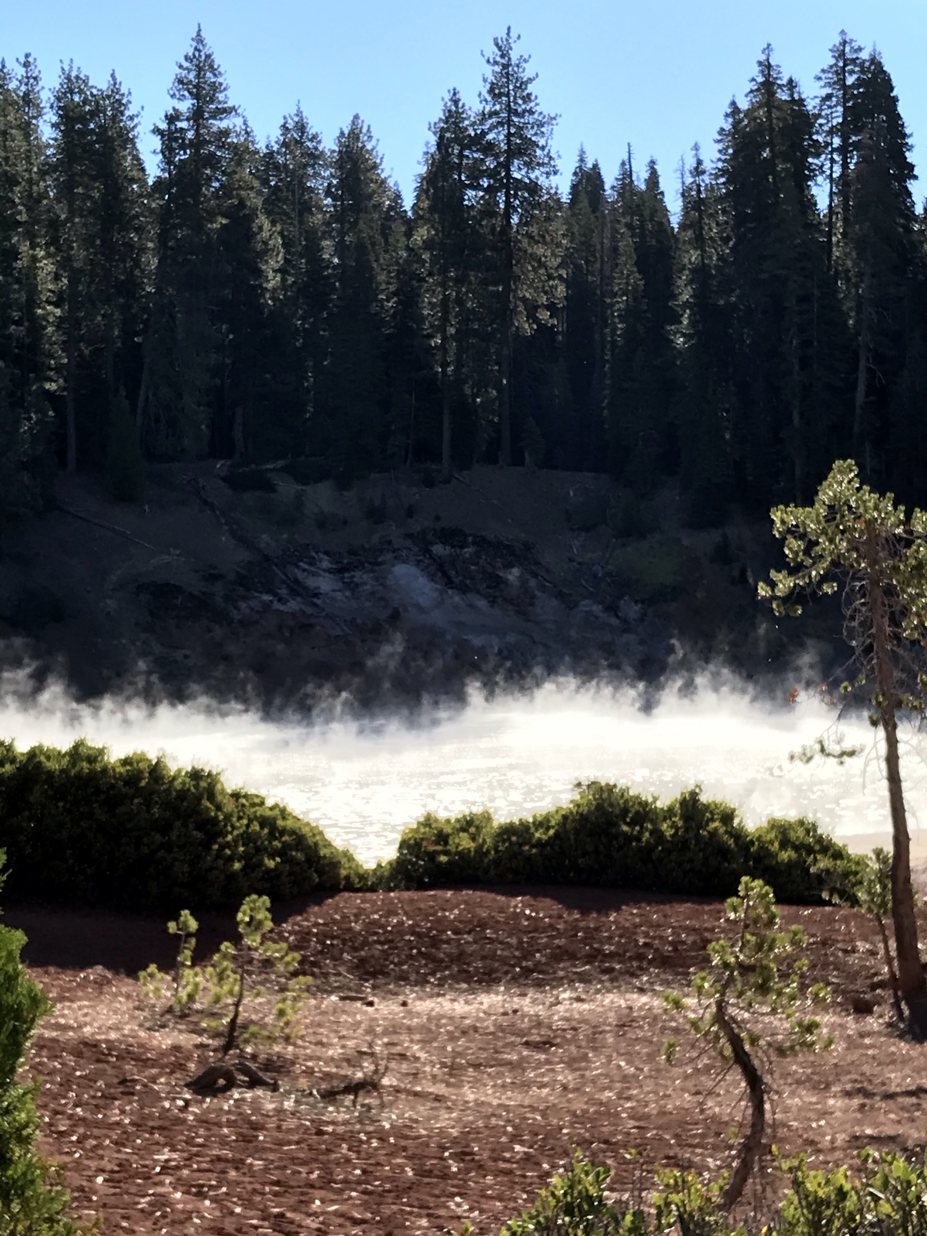 So now I can say that I hiked the PCT, well a very small part of it anyway, from the trailhead to another one of Lassen’s exciting hydrothermal features: Boiling Springs Lake. This is an apt name for this clay colored lake that, in places, resembles a witches cauldron.