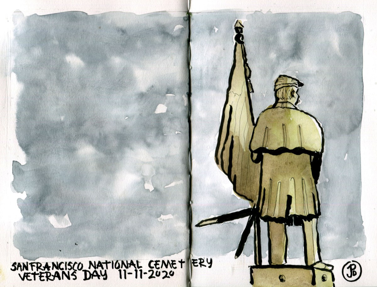 I set up my sketching stool and put down the line work of Eddy’s grave. I then added some watercolor.