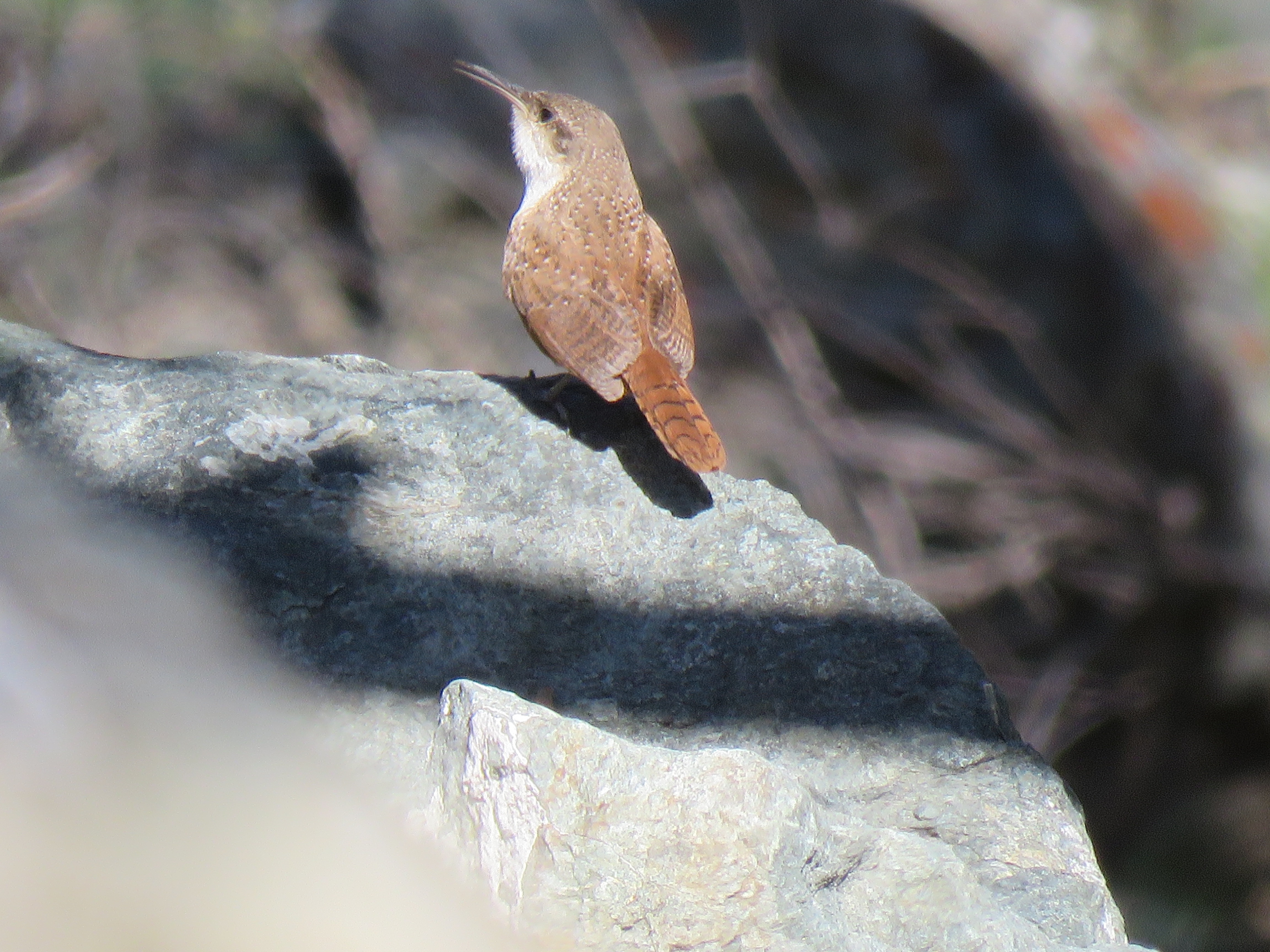 Our first view of the singing canyon wren, perched on a rock of of course!A closer view of it’s epic song. It’s amazing that such a small bird produces such a loud and intense song.The curious canyon wren, looking our way.