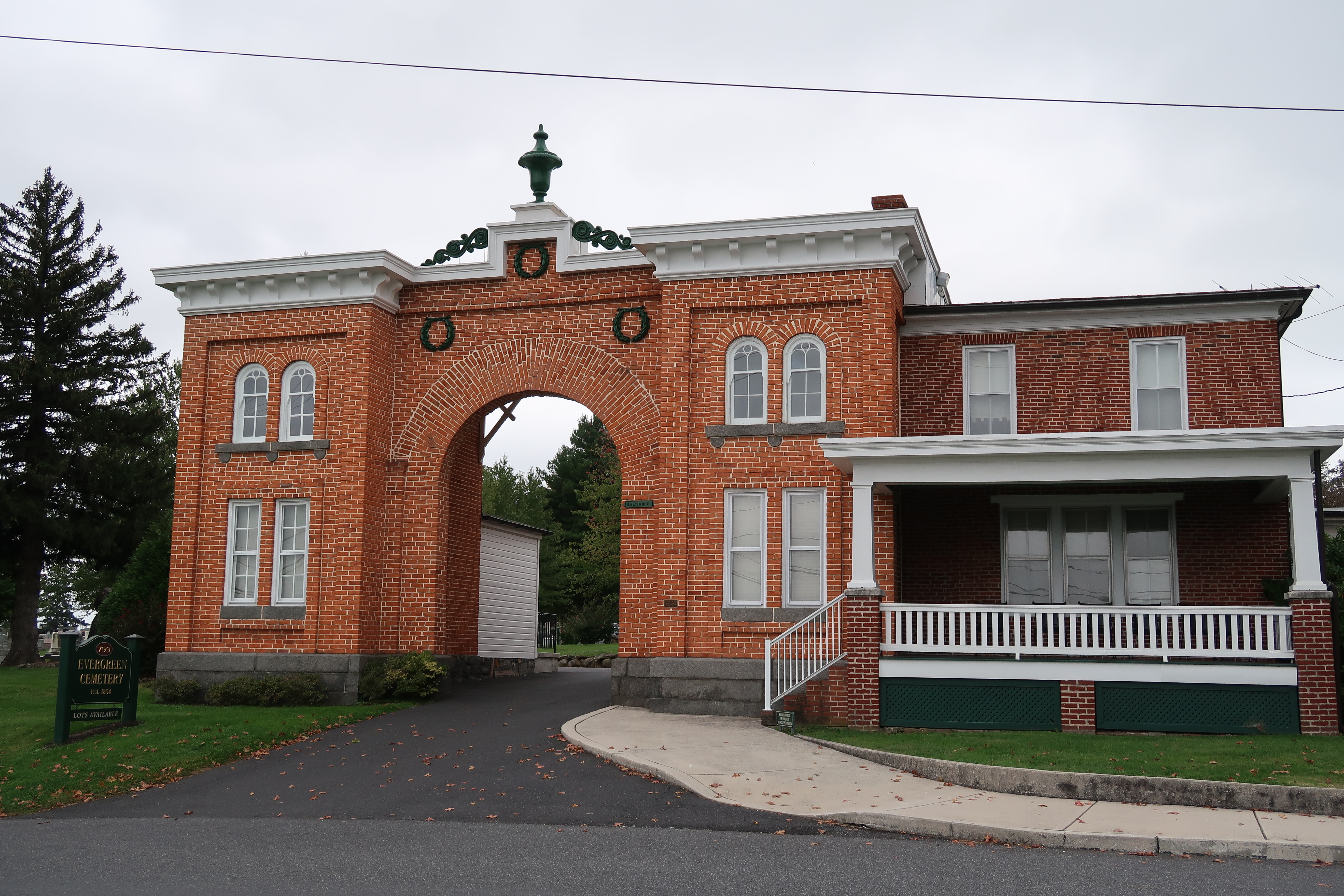 This cemetery was created to be a permanent resting place for the Union soldiers that fell at the Battle of Gettysburg. The new cemetery is bordered by the existing Evergreen Cemetery. This cemetery was founded in 1854 and the only civilian killed during the battle, Jennie Wade, is buried at Evergreen. The front gate was the site of fighting on the first day of the Battle of Gettysburg.