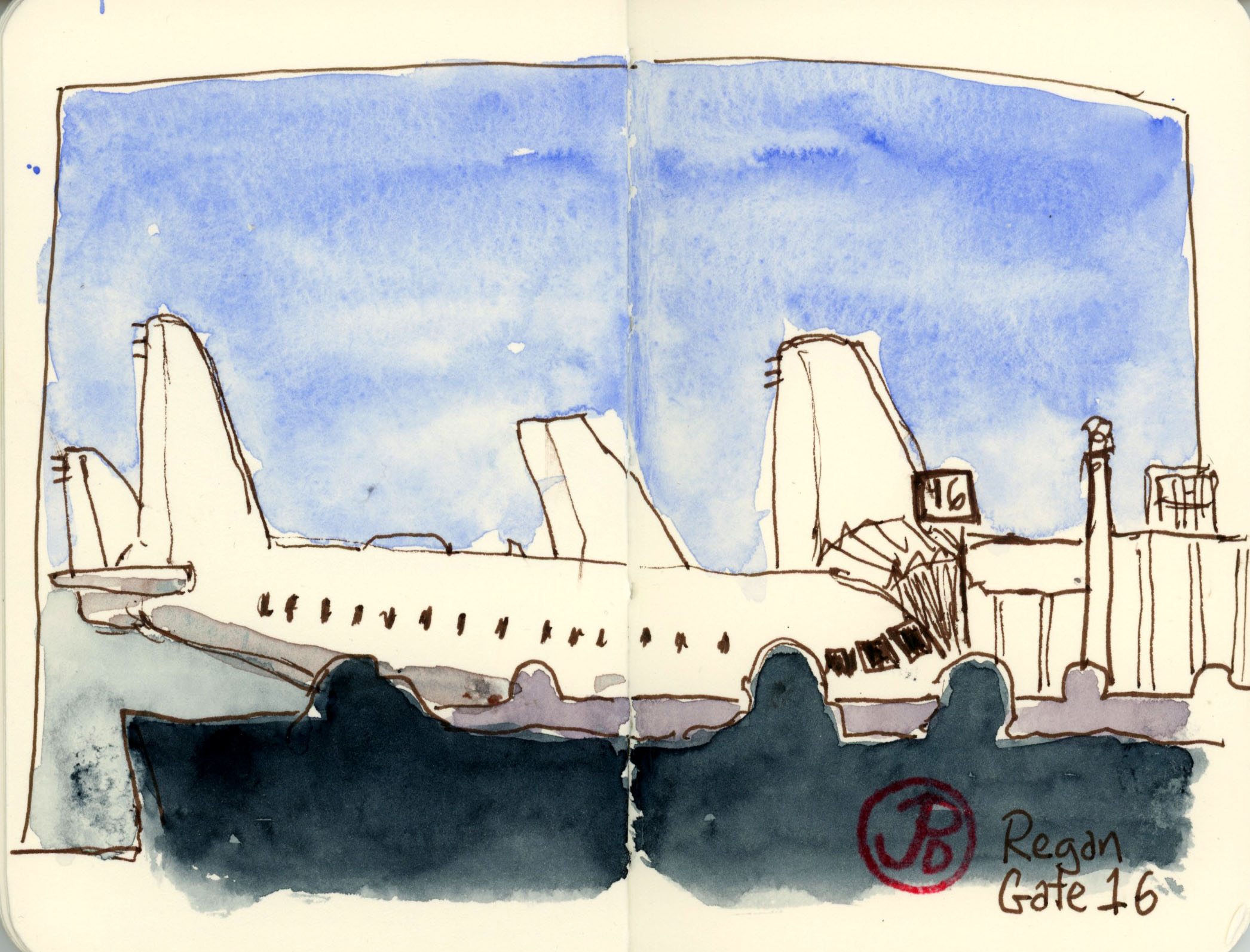 I have included a few of my sketches in this post. They were done at SFO (San Francisco) and DCA (Reagan International).