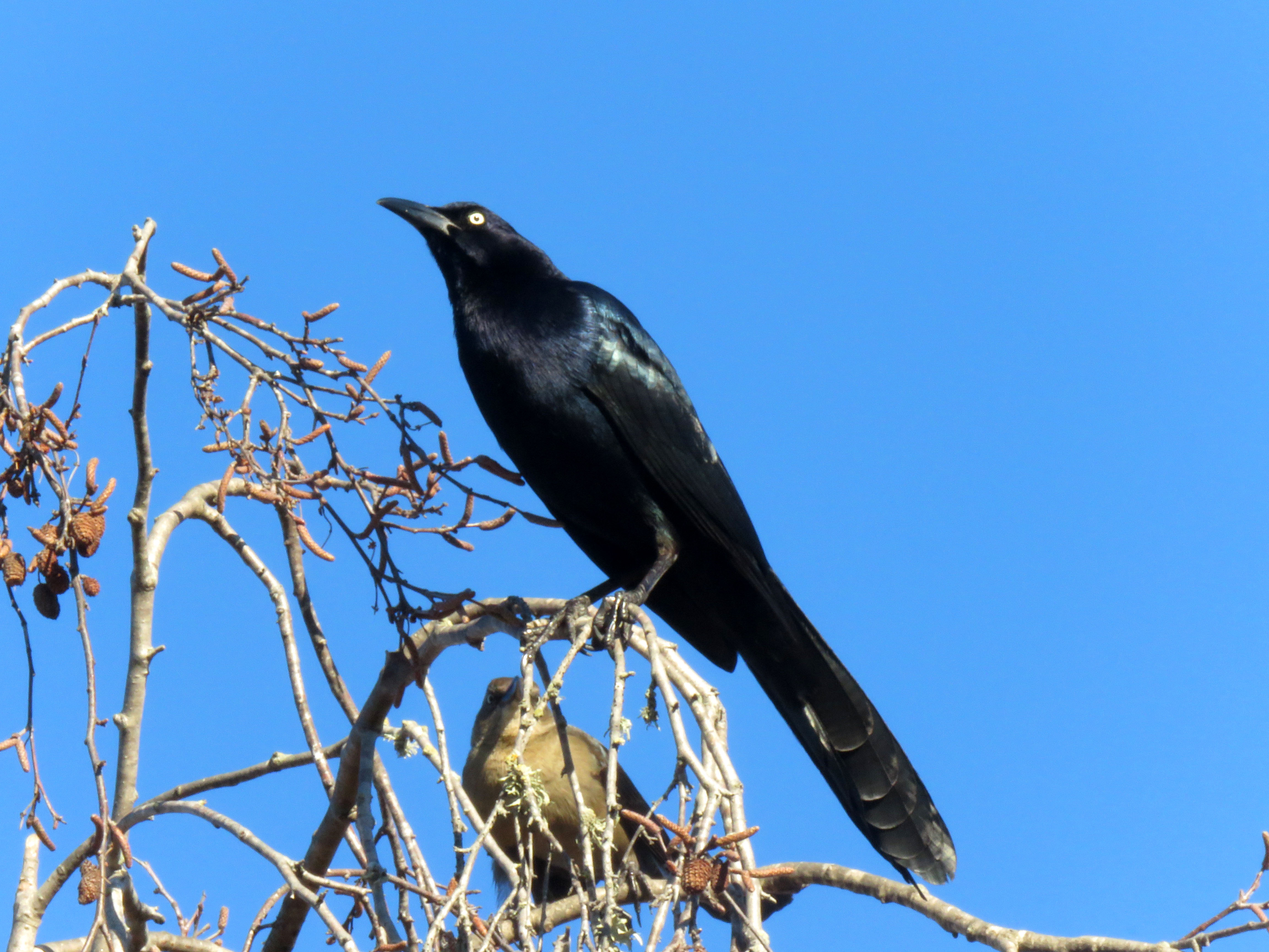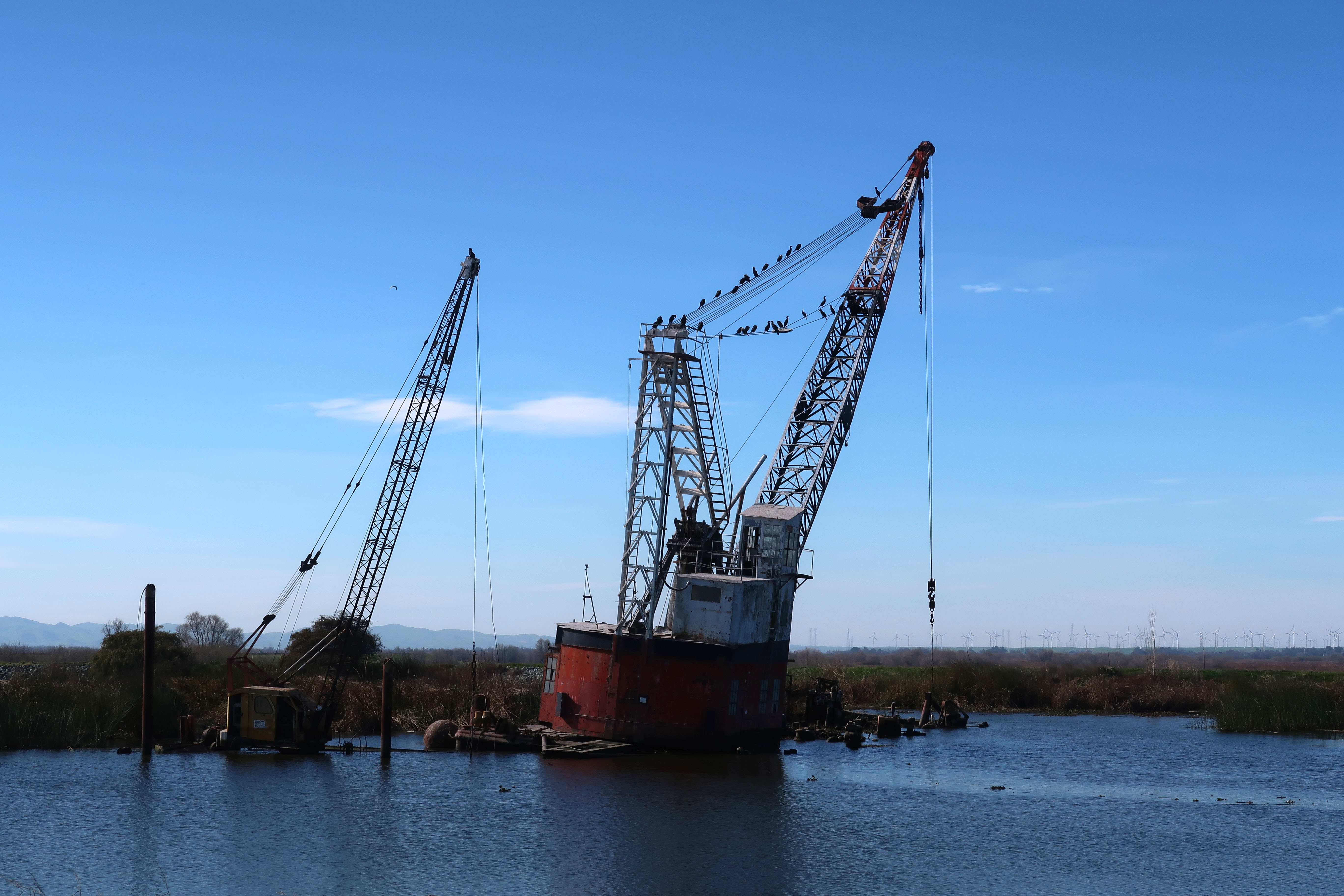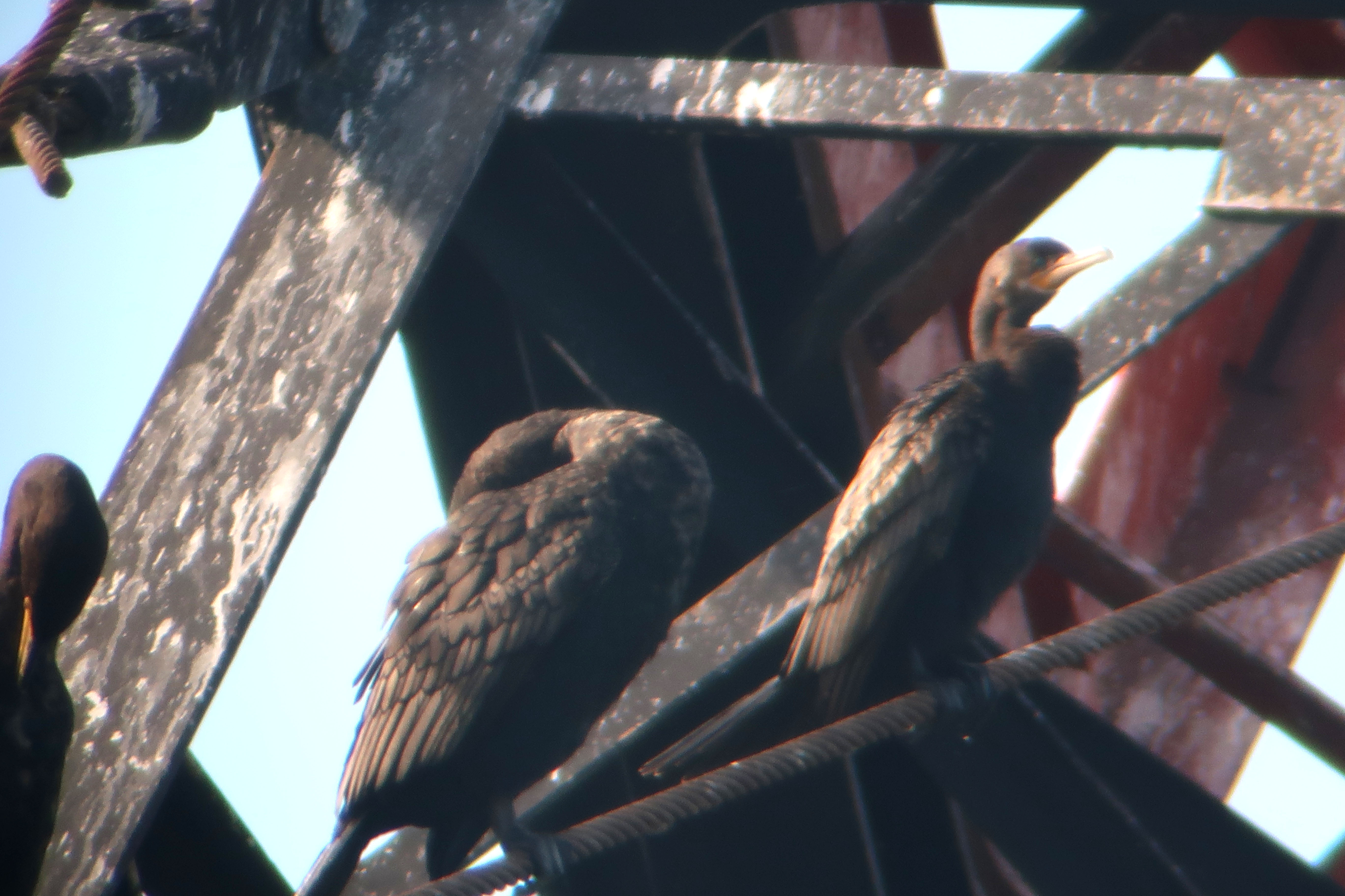 The Neotropic had been seen perched on a ruined crane barge. We found the barge and cormorants perched on the cables. With a short search we found the Neotropic perched among the larger double-crested cormorants. Lifer for Grasshopper and a new county bird for me! This was a first record for this species in Sacramento County.