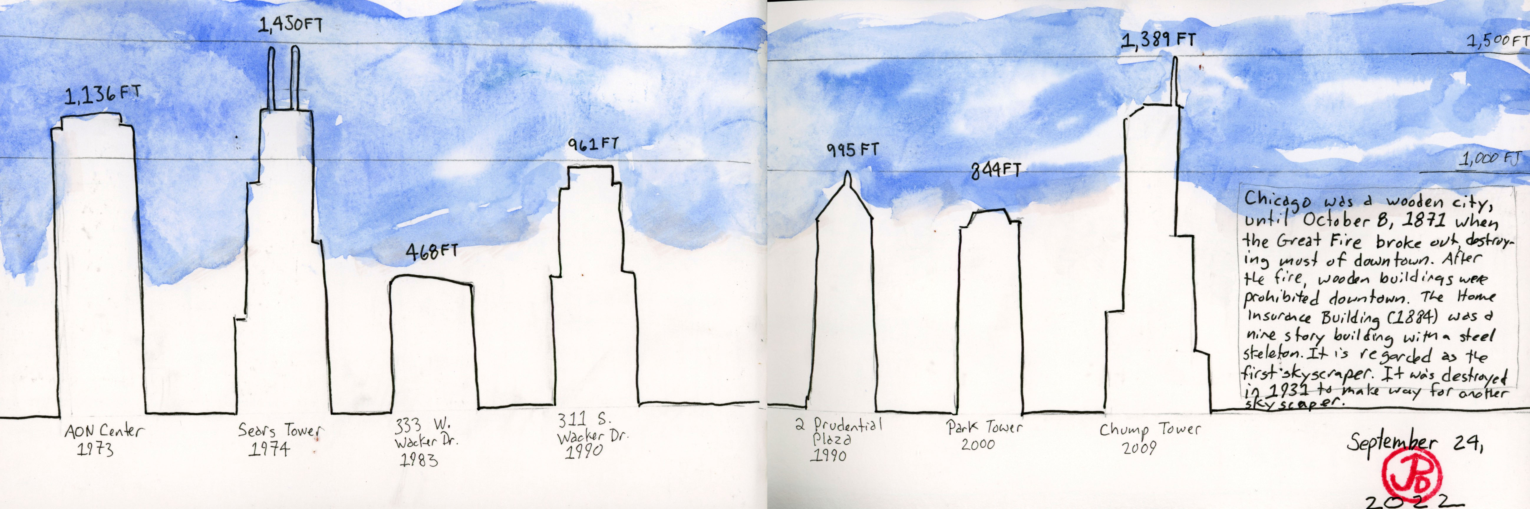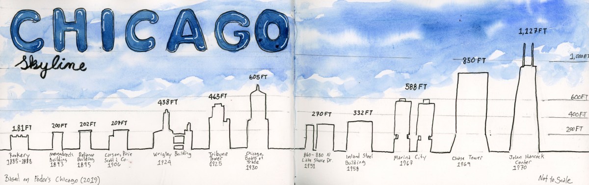 I wanted to sketch Chicago’s skyline but I couldn’t see the forest through the trees. I had to find a vantage point away from the high rise of the Loop.