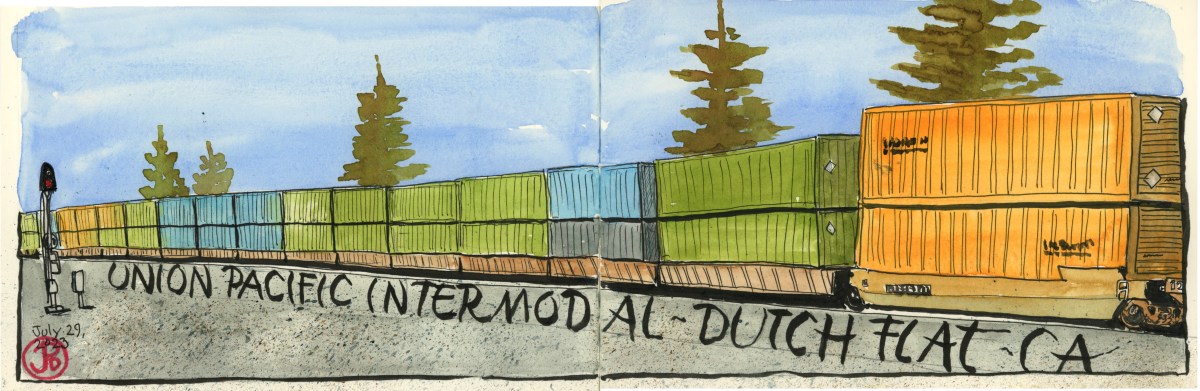 I once chased the California Zephyr Train # 6 from Roseville to Truckee but now I wanted to chase what really makes Union Pacific the big bucks: an intermodal freight train!