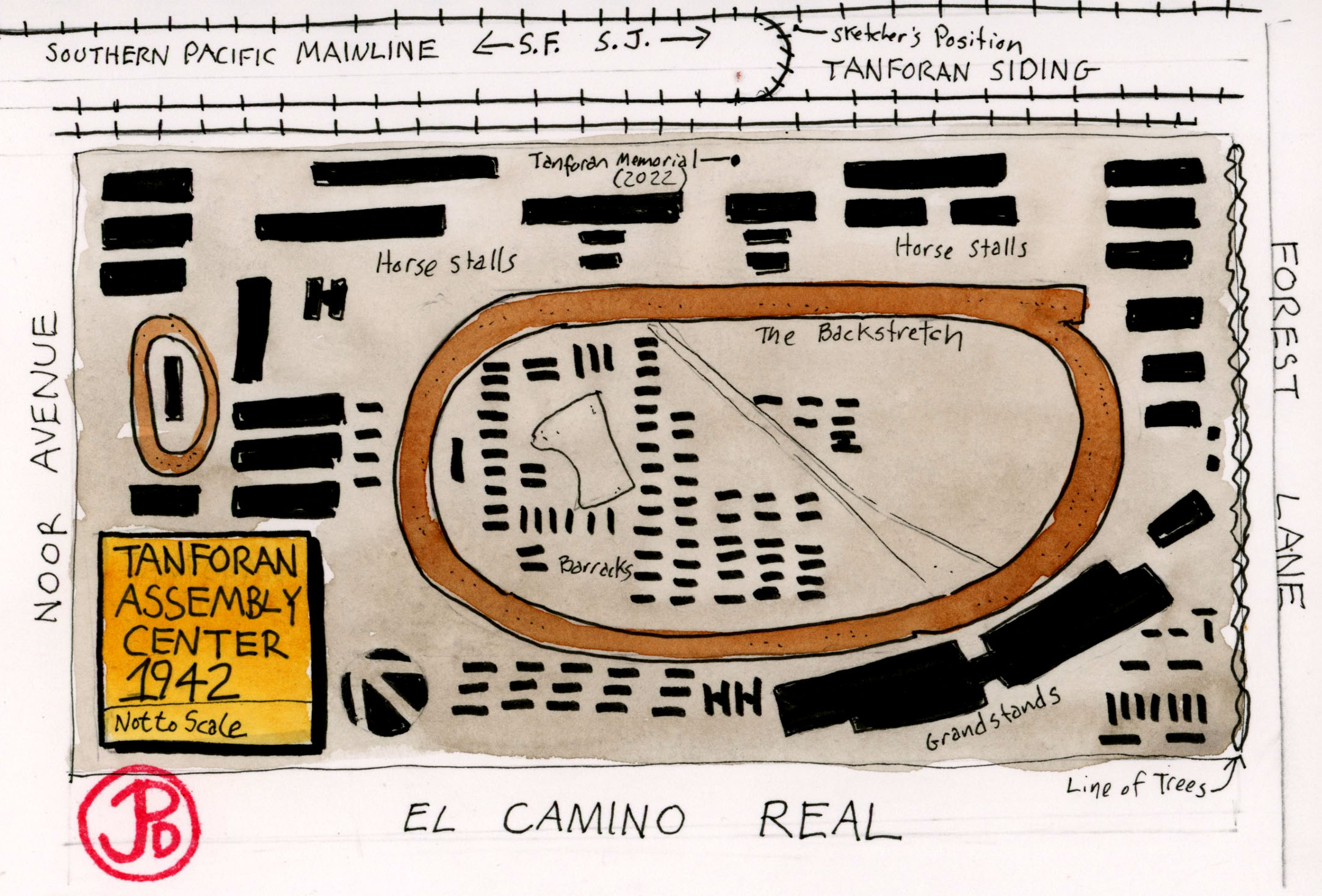 The first internees arrived on April 28, 1942. They were housed in barracks and horse stalls that reeked of manure and urine. Some families spent about eight months here before being transported, over rail, to the Topaz War Relocation Center in Utah where they remained until the end of the war.
