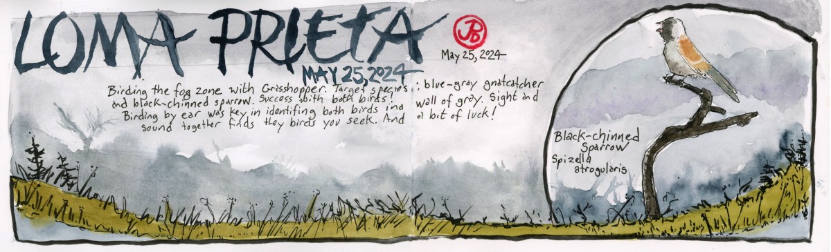 Early on a Saturday morning, Grasshopper and I headed up on winding Summit Road. Our birding destination the Bay Area birding hotspot: Loma Prieta and the “Saddles”.