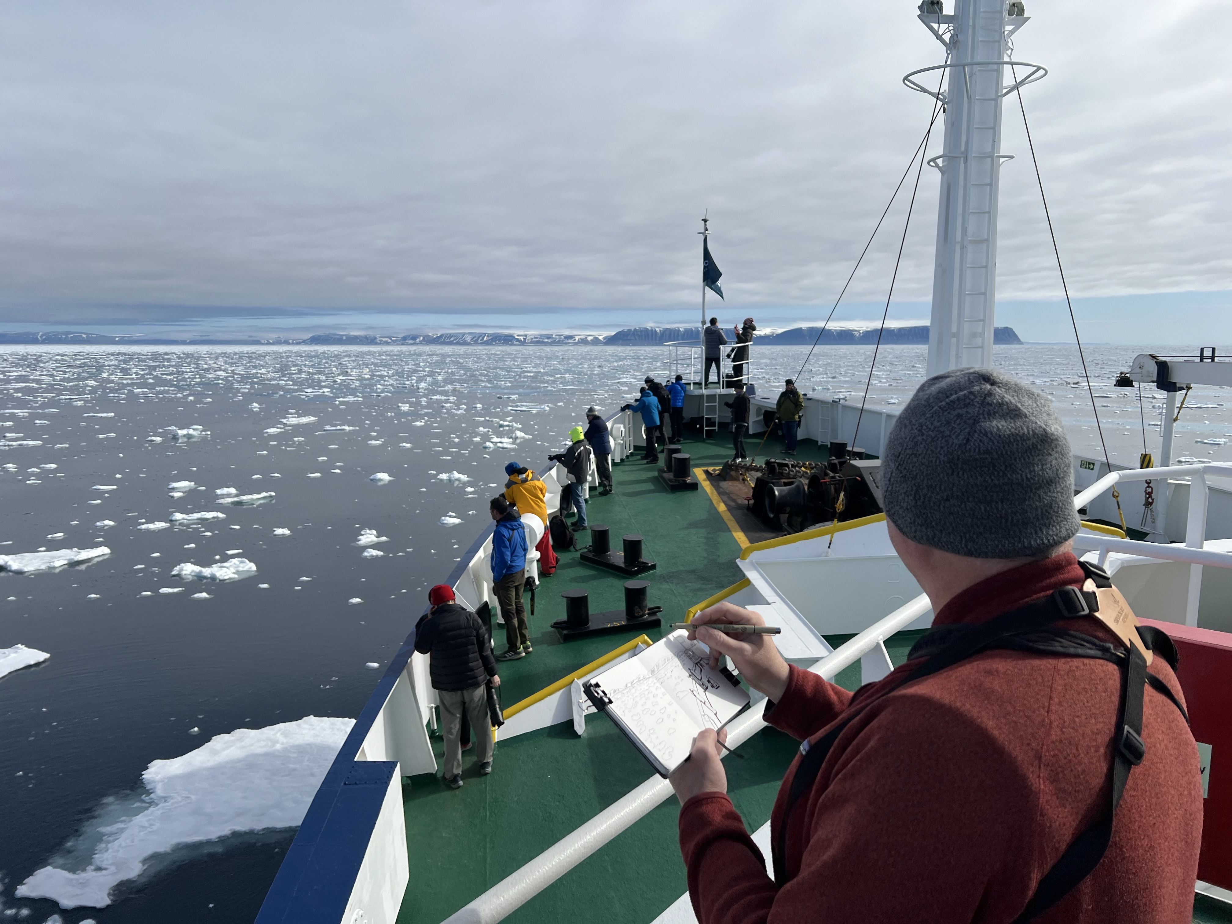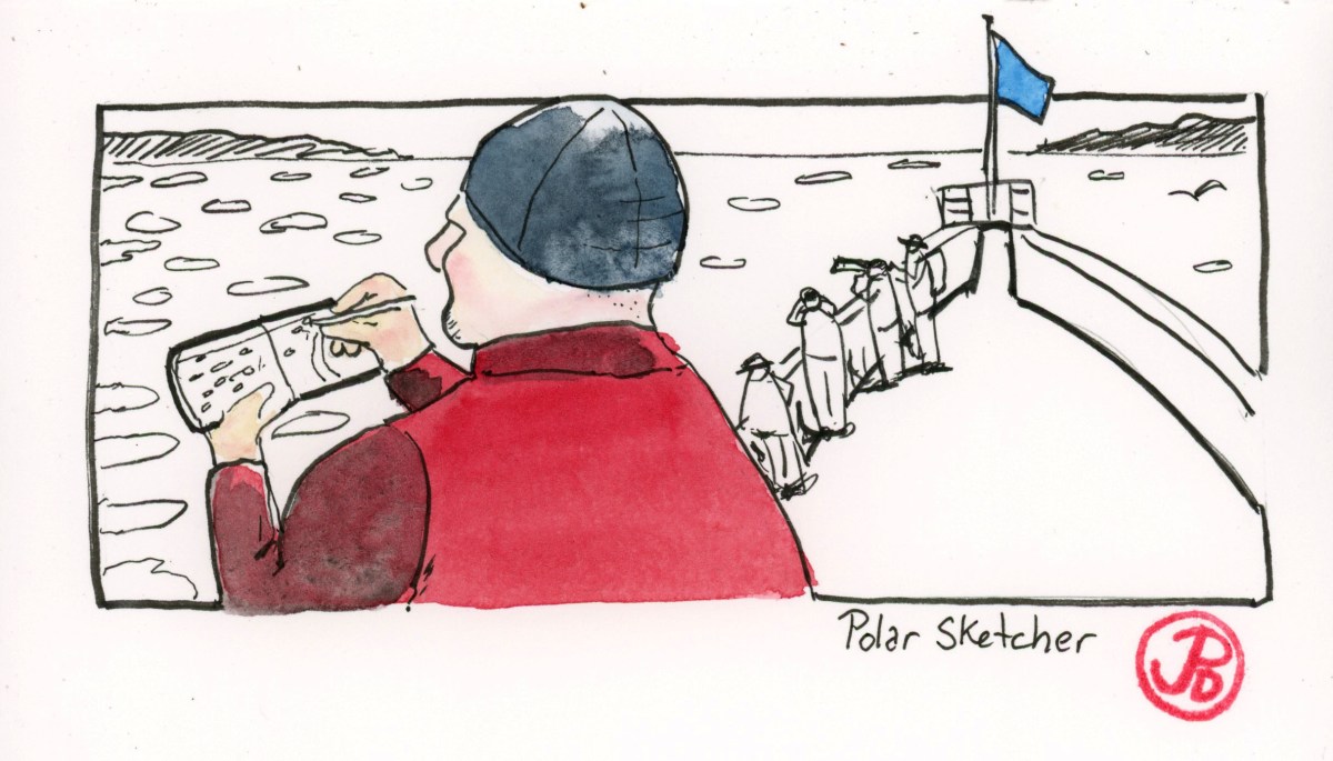 In my featured sketch, the crowds that turned out to see Big Boy were a big part of the story for me. So while 4014 is in the background, the locomotive is obscured by people.