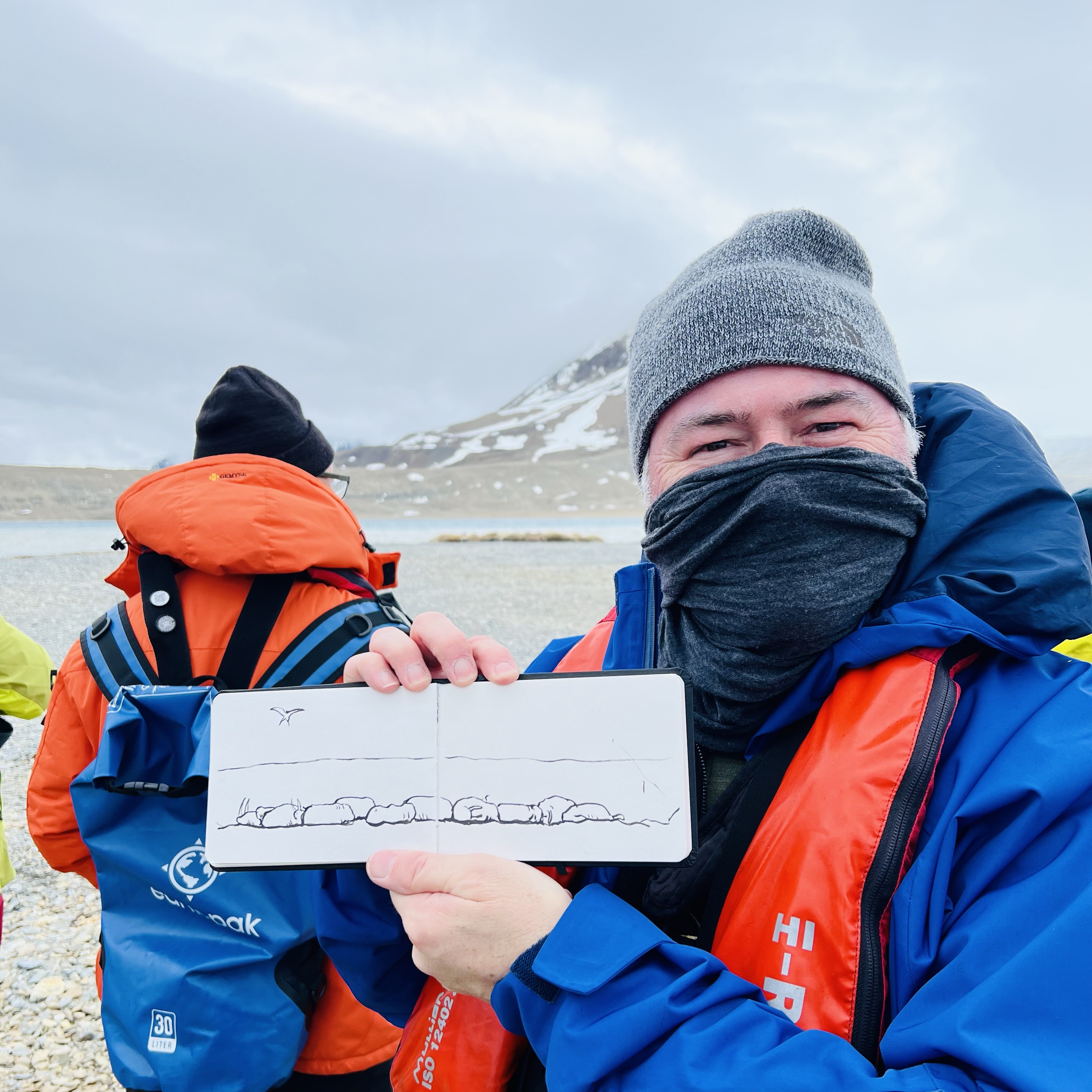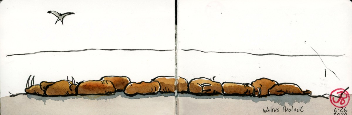 This was a great time for a sketch. So I took out my small Hahnemühle sketchbook and started sketching walrus.